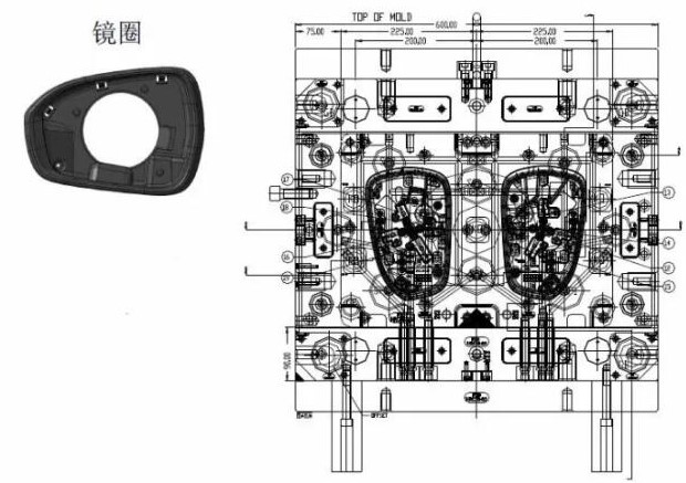 模具結(jié)構(gòu):鏡圈產(chǎn)品一般無結(jié)構(gòu),此車型鏡圈產(chǎn)品無行位斜頂結(jié)構(gòu)