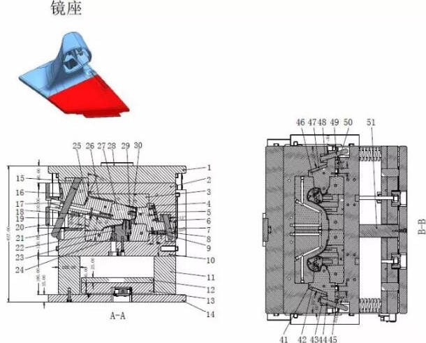 對(duì)于汽車后視鏡支架模具,設(shè)計(jì)時(shí)要注意: